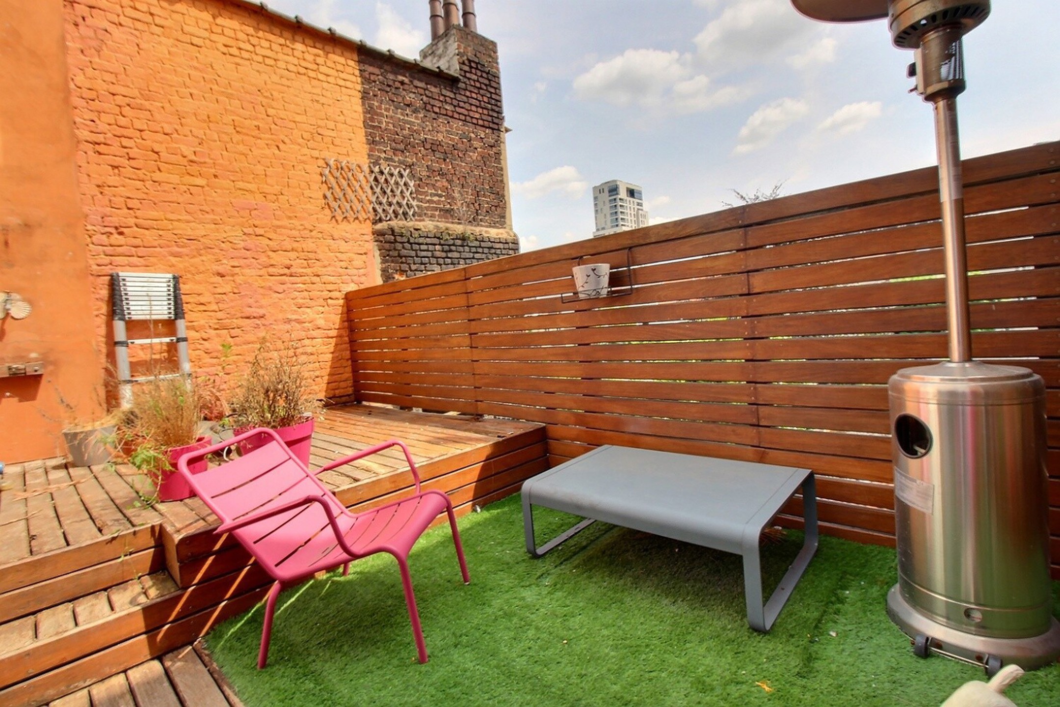 - 4ème étage : 1 chambre avec salle de douche, bureau avec accès à une terrasse de 12 m², toilettes séparées.