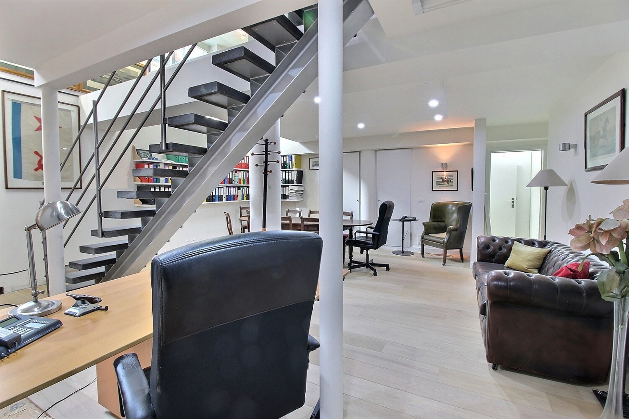 - op de begane grond, een gesloten kantoor en een open kantoor.